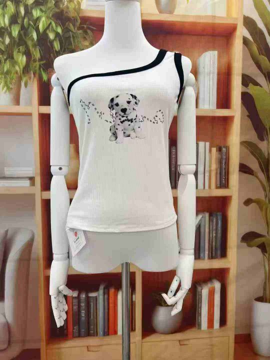 全清6.8元/清66件小奶狗印花斜肩辣妹吊带,独立包装带吊牌,码数S-XL,品质...