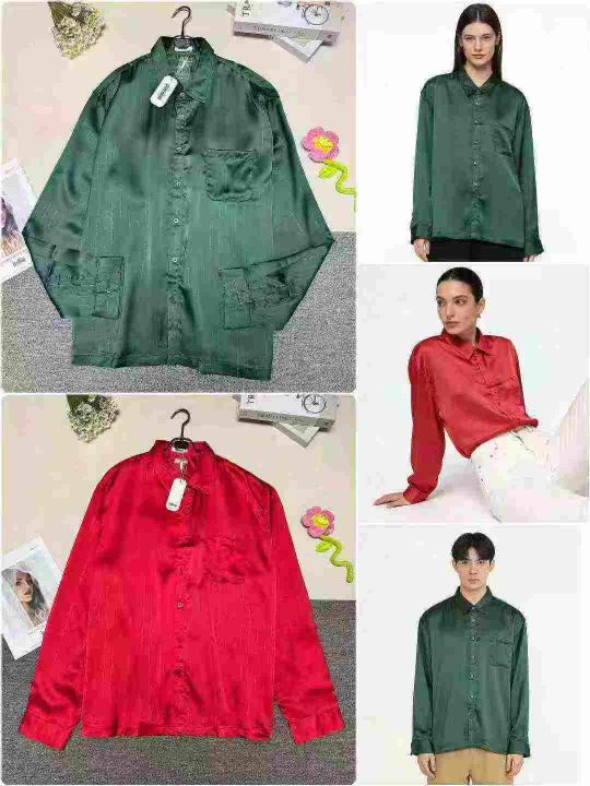 外贸男女条纹仿真丝缎面长袖职业气质衬衣,整款多色,...