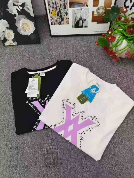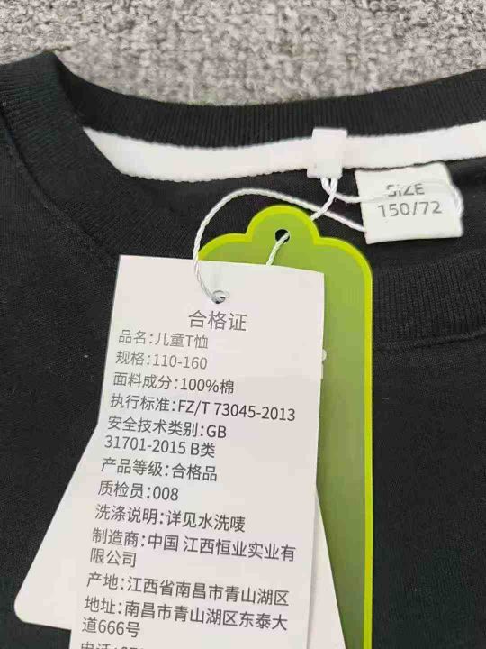 纯棉双面印花logo童装短袖 数量1500件左右 尺码110--160 整款两个颜色 纯棉面料后领包边 独立包装带吊牌
