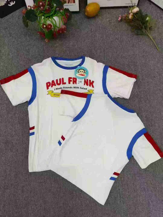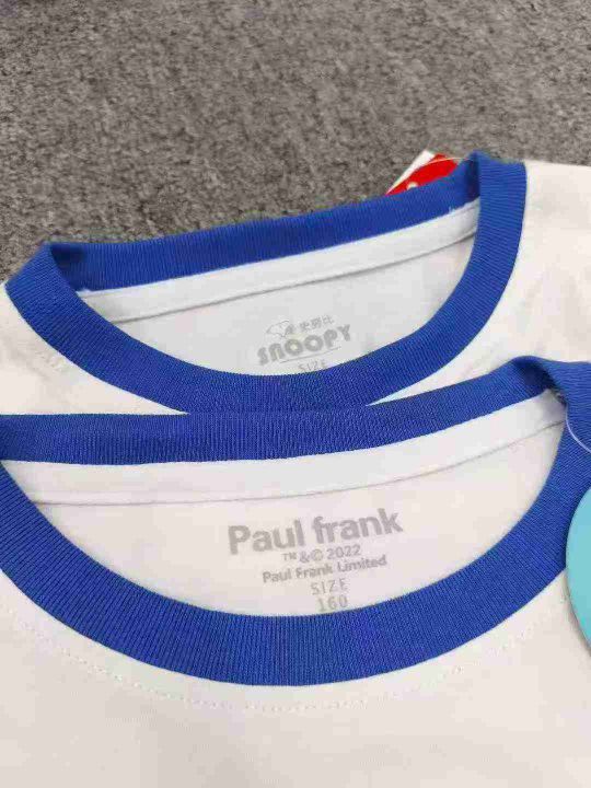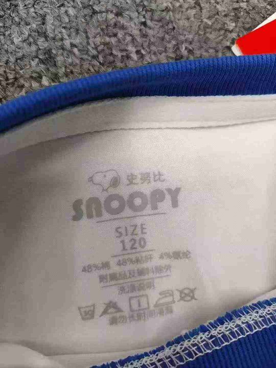 品牌童装个性logo短袖T恤,数量1000件左右,码数110--160,整款两个品牌(史努比、大嘴猴) 可分品牌出,后领包边,货品整洁质佳