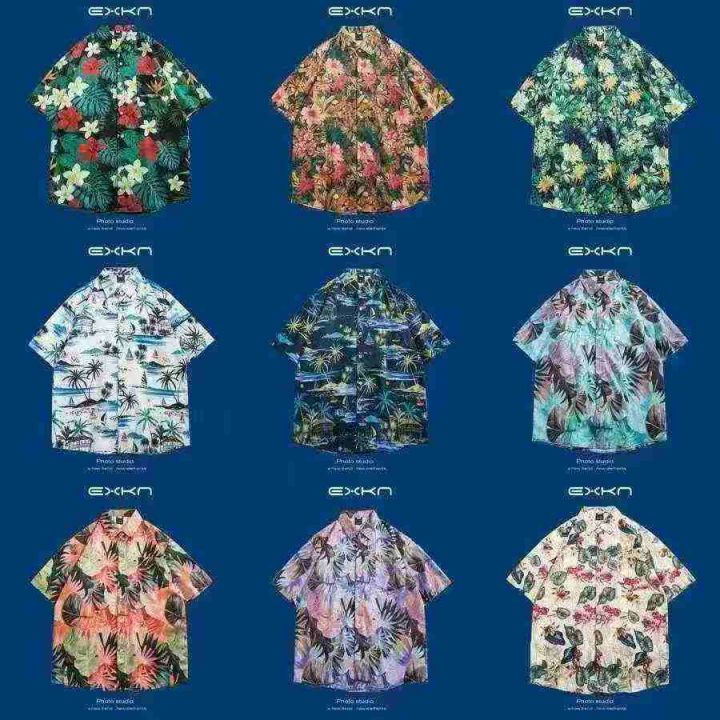 欧洲站夏季新款男士衬衫夏日风情时尚短袖免熨烫翻领衬...
