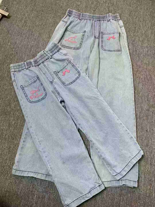 5.8清405件MQD童装女中大童牛仔裤夏季新款儿童休闲甜美百搭宽松阔腿裤。大货基本都是浅蓝色 码数120-165 独立包装