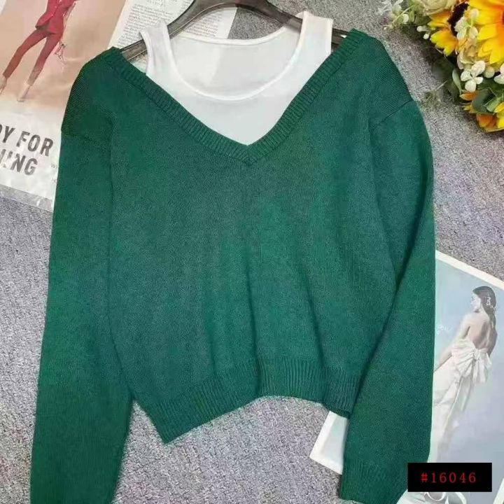 拼接假两件设计师款长袖毛衣针织衫380件,单款单色均码,独立包装。
