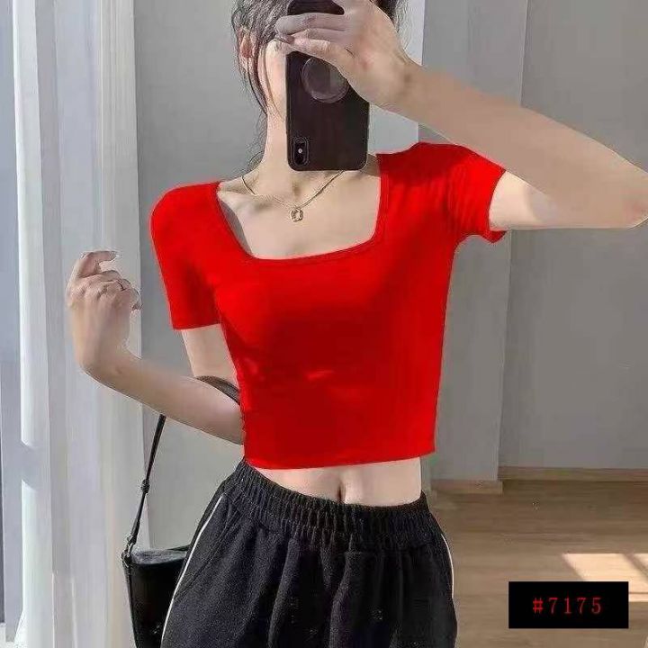 5000多件女款法式方领高腰露脐短T,尺码:XS~XL,面料软糯高弹力,全清价3.8元,分货加0.5元。@_@