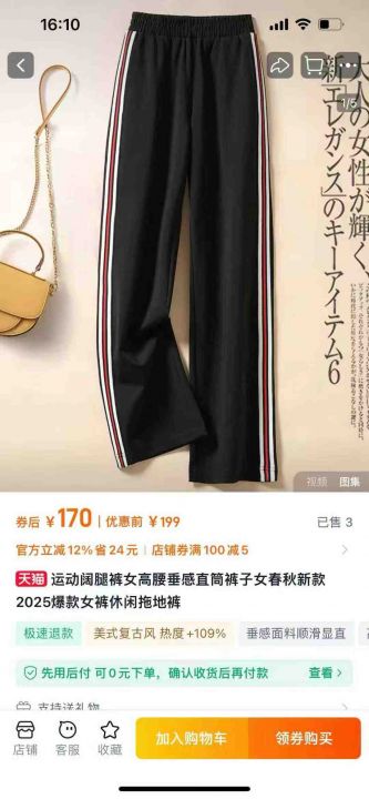 天猫精选550条 新款春秋运动阔腿裤高腰显瘦垂感侧边条纹百搭休闲裤,面料超好 高弹力,高品质可入实体店 独立包装带吊牌 码数XS~XXL码 全清11.8元分货加一[烟花][烟花][烟花]