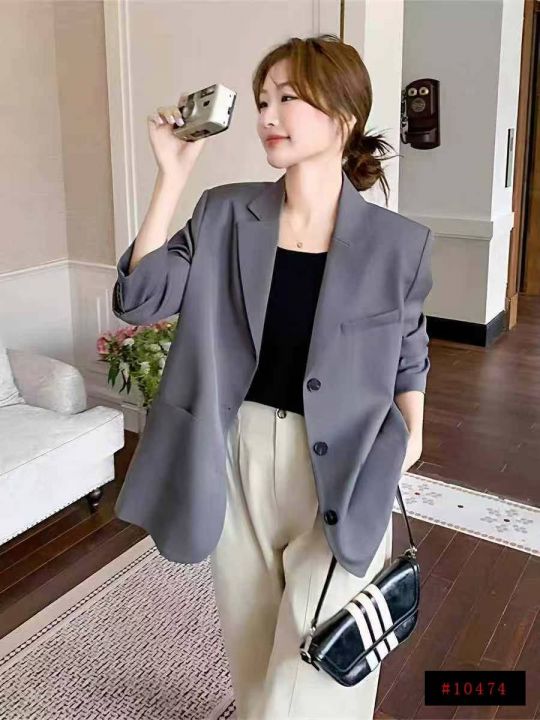 100件杏色西装外套女小个子春秋季新款今年流行高级感炸街宽松休闲西服,单...