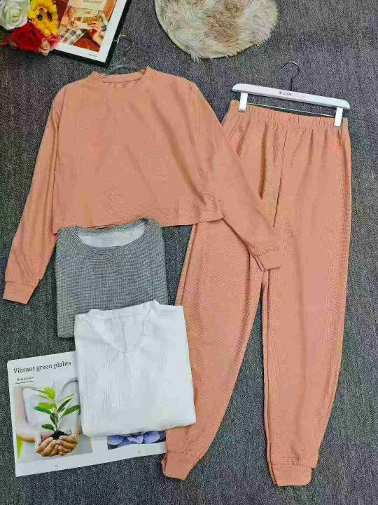 工厂回收2350套外贸跨境热卖辣妹华夫格运动休闲女士卫衣套装,码数S-2XL。版型很好,面料有有质感有弹性,有独立包装。分货➕1