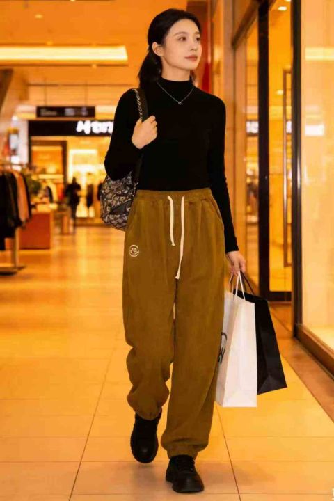 全清价8.9女士薄款灯芯绒秋冬显瘦气质裤子,独立包装...