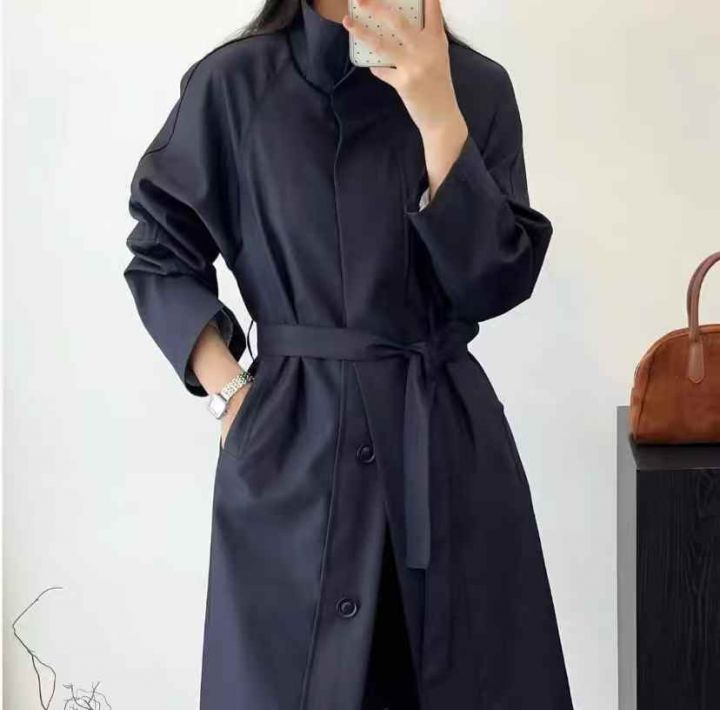 600件左右韩系新款立领宽松腰带立领气质长款风衣外套...