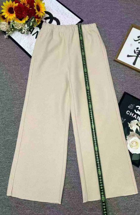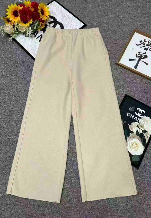 秋冬新款净版宽松简约松紧腰直筒阔腿毛呢裤,独立包装...