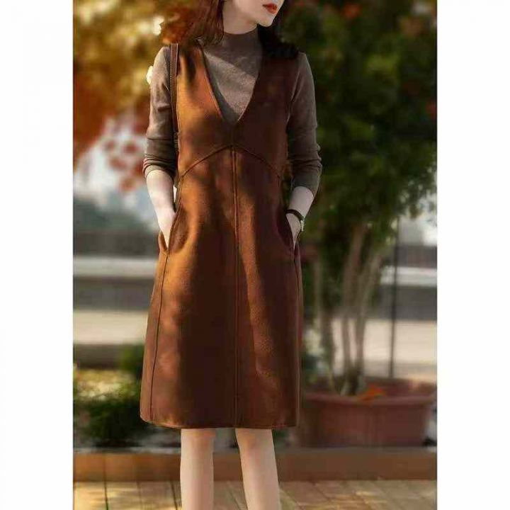 秋冬复古宽松小众设计感V领毛呢背心无袖连衣裙,独立...