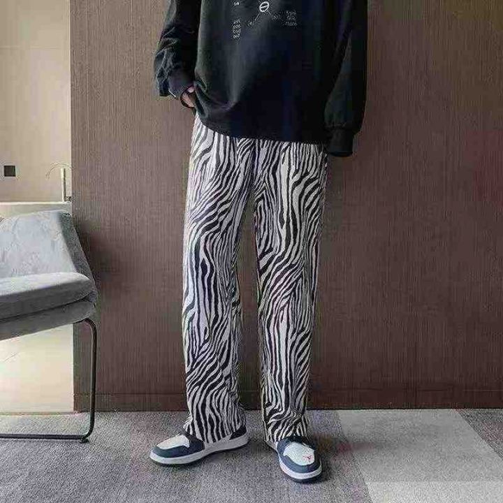 全清6.8分货+1秋冬季男女同款加绒斑马纹裤子直筒宽松百搭阔腿休闲裤拖地裤...