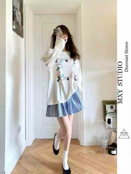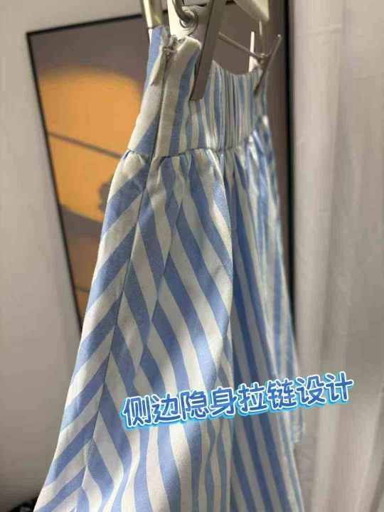 90件左右日单少女系蓝色条纹定制松紧腰设计靓妹短款半...