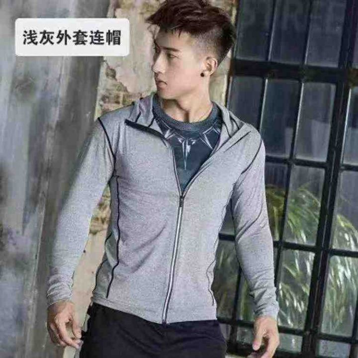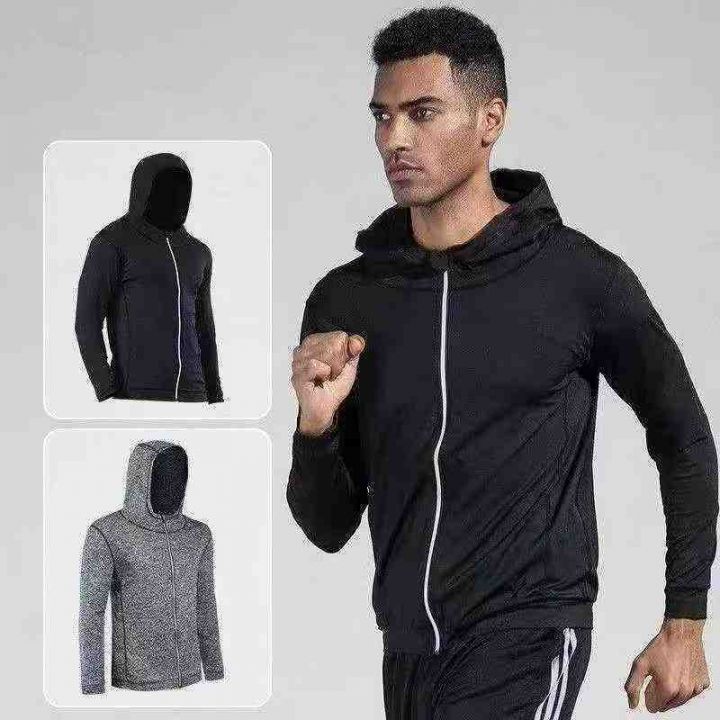 男士拉链连帽开衫健身服装长袖速干高弹力跑步篮球训练服,独立包装,整款两个色,426件 尺码M-2XL。 货号:24862