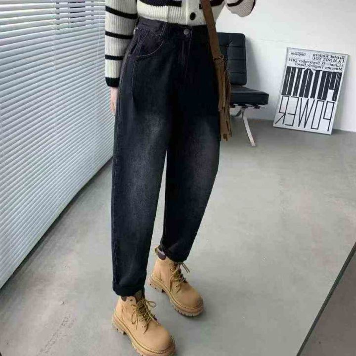 全清10.8大码哈伦秋冬牛仔裤新款高腰宽松加厚显瘦阔腿...