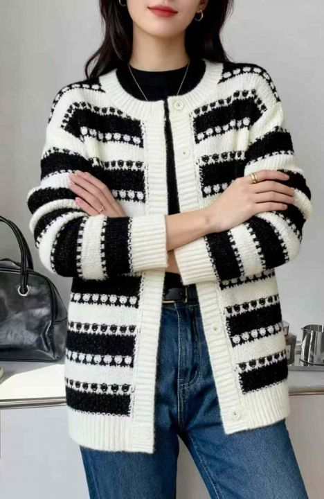 秋冬新款高品质的法式复古撞色条纹加厚宽松慵懒风毛衣开衫,独立包装,均码面料软糯厚实大版型,1400左右,全清13.9元超低价秒杀!分货加一!
