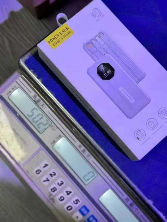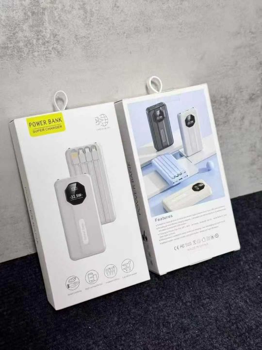 充电宝,带手电筒,足容20000毫安,超级快充,带4条线,25年电池A品带3C认证,带3C检测报告,22.5W带线快充,全新封膜,箱规箱规40×30×30,一件50pcs,黑白2色,4000pcs