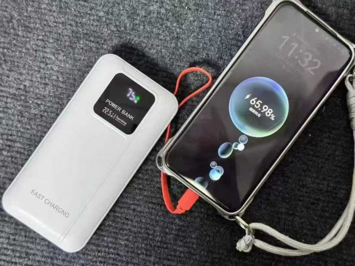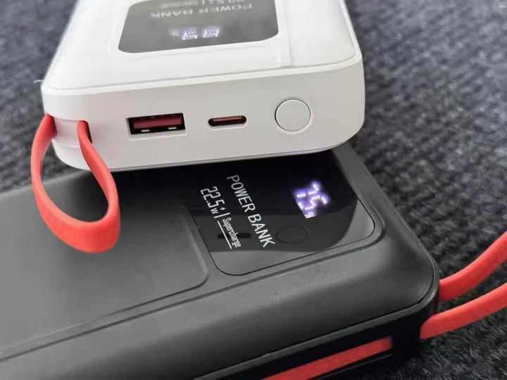 充电宝 足容20000毫安,超级快充,电池A品带3C,带3C检测报告,22.5W带线快充,25年电池,全新封膜,箱规箱规40×30×30,一件50pcs,黑白2色,新入库5000pcs