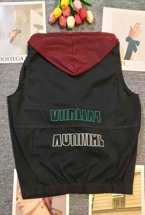 连帽拼接设计感黑色牛仔马甲外套,[爱心]160件左右,码数S-5XL,穿80-160斤,万佳档口货,原包装️无瑕疵,[666]实体店品质,分货加一