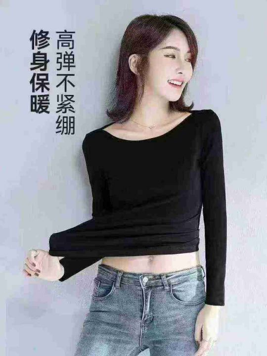 春秋百搭女款半高领和一字领长袖打底衫,高弹力面料柔...