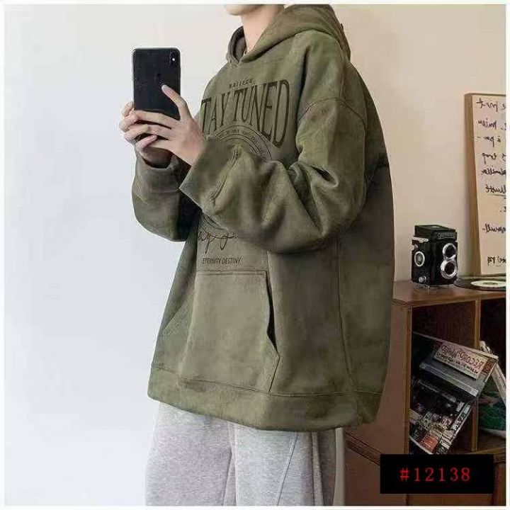 [福]爆款重磅麂皮绒连帽卫衣美式街头潮牌运动加绒烫画上衣750件,版型宽大...