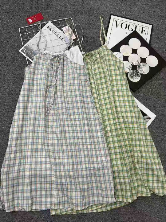 ☕️夏日度假风格子吊带裙连衣裙女夏季新款清新宽松显瘦连衣裙50条全清8.8元,均码,单款2色,肩带可调节,全部带内衬 ,精品独立包装[庆祝][庆祝][庆祝]