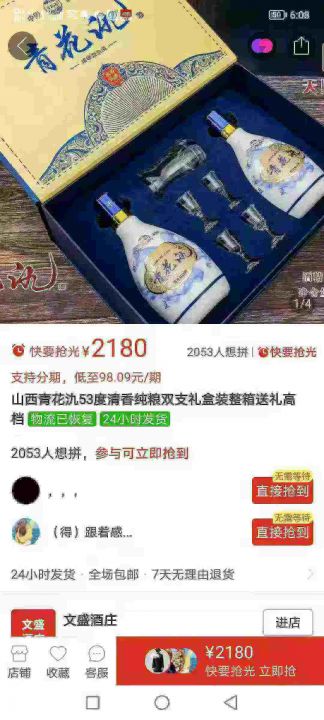 卖的太便宜了,最后3箱,超低价出售,全清200元一箱,一箱起发230元,山西杏花村酒业股份 青花氿礼盒 53度 一箱3提 一提475ml*2瓶 带4个杯子 一个分酒器 大礼盒 平台干净。 货号:29195
