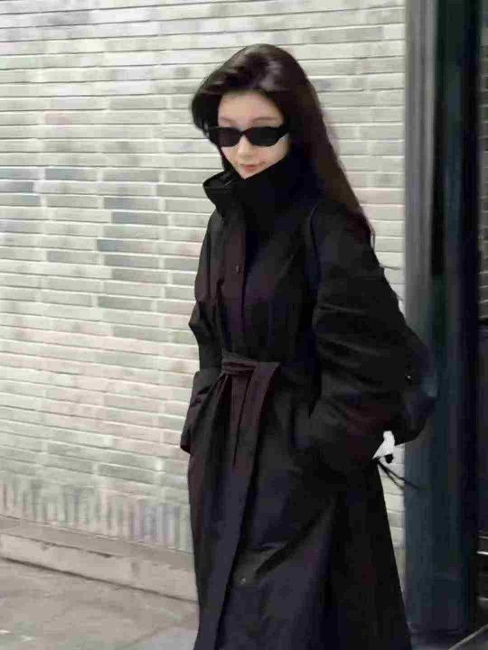 600件左右韩系新款立领宽松腰带立领气质长款风衣外套...