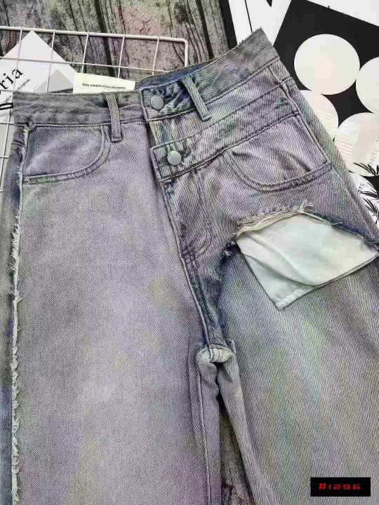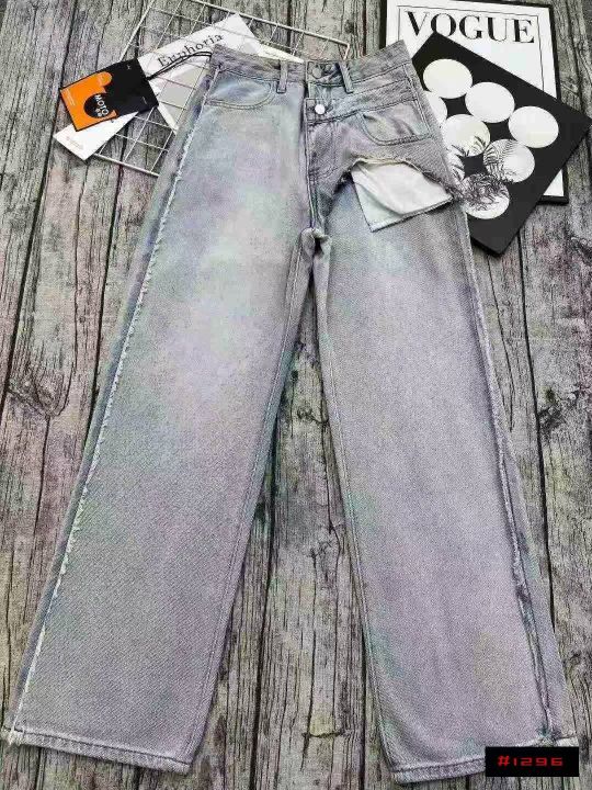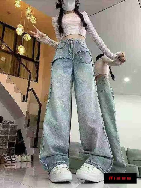 ☕️63033# 美式拼接毛边阔腿牛仔裤女秋季新款高腰宽松显瘦直筒长裤 350条全清14.8元 分货+1元