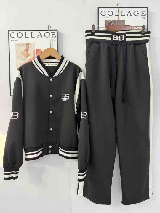 巨好看的早秋时尚卫衣套装女高级感黑色棒球服外套阔腿裤两件套潮,数量400套,码数M-2XL,独立包装,货品干净漂亮。