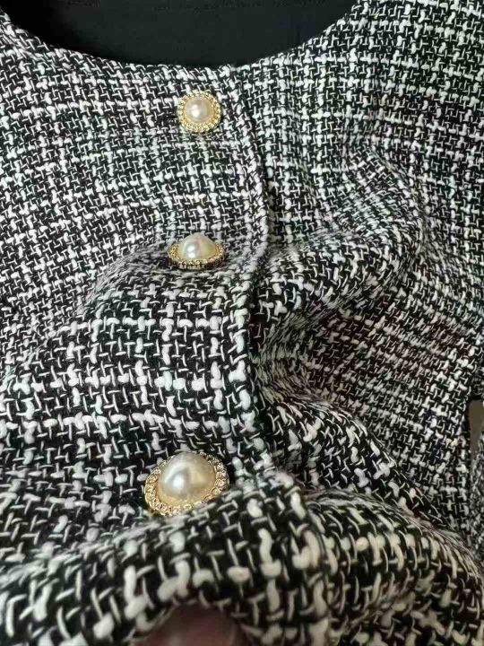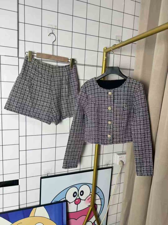 22.8清170套女装小香风外套短裤 两件套 复古圆领长袖格纹小香风粗花呢外套高腰短裤套装 码数XS- L 独立拉链包装