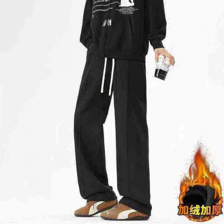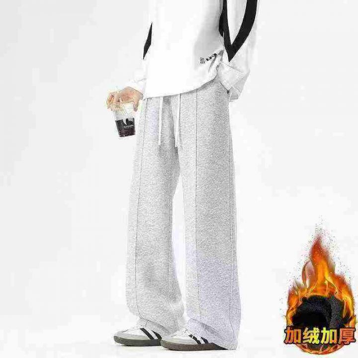 宽松直筒裤男士卫裤冬季加绒阔腿运动休闲裤潮流ins宽腿长裤,整款两色,独...