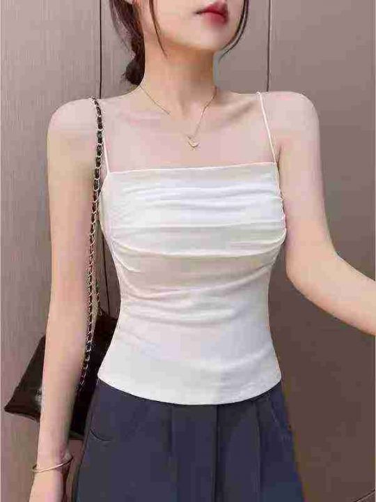 800件纯欲褶皱吊带背心女夏季带胸垫显瘦内搭打底外穿修身美背短款上衣 独...