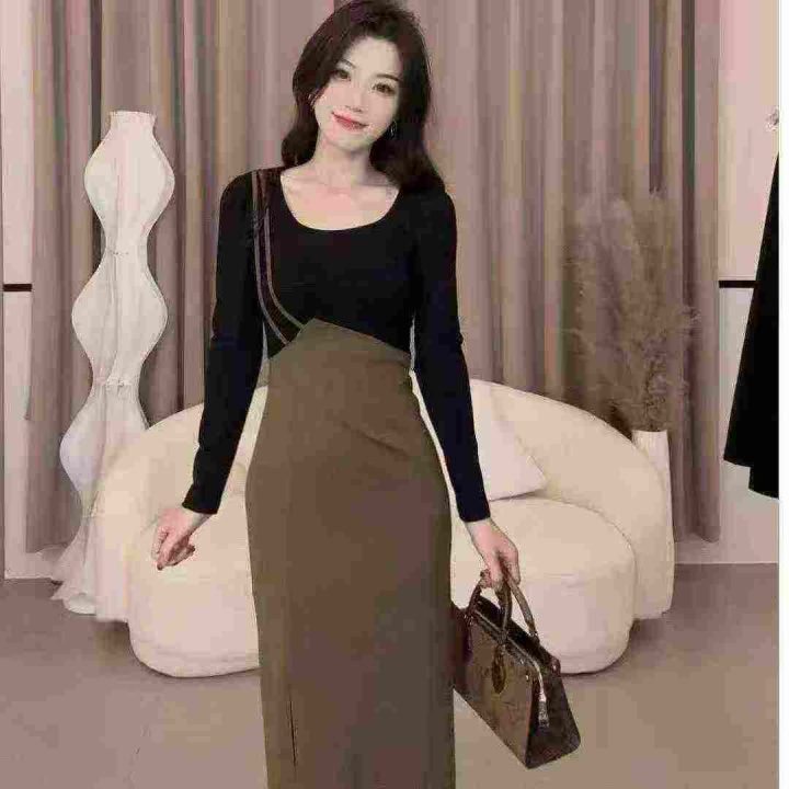 法式气质设计感连衣裙378件7.9,面料舒适,撞色拼接,下摆开叉设计,码数1-...