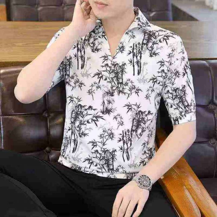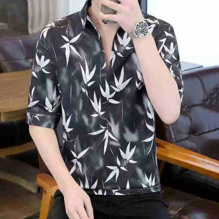 1827件,夏季男士V领T恤衫潮流休闲百搭宽松帅气印花免...