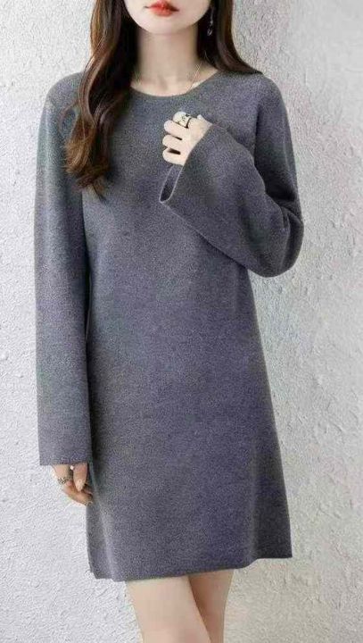 秋冬新款净版简约宽松百搭针织毛衣连衣裙,独立包装,...
