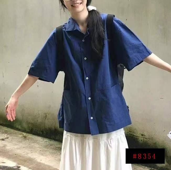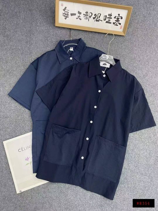 复古短袖休闲衬90件7.9,POLO领,两侧大口袋,码数1-4...