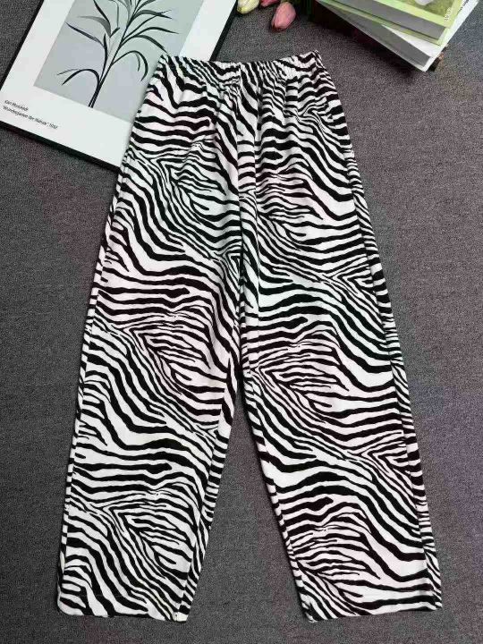 秋冬季男女同款加绒斑马纹裤子直筒宽松百搭阔腿休闲裤拖地裤,独立包装,1589件,尺码3.4.5(M-XL)。 货号:24862