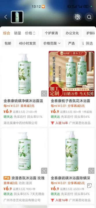 800ml沐浴露1万瓶,阿里控价6.9,拼多多控价29.9,生...