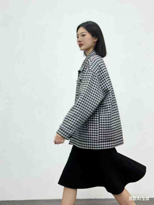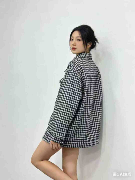 潮牌复古翻领夹克男女同款外套格子老钱风棋盘宽松休闲...