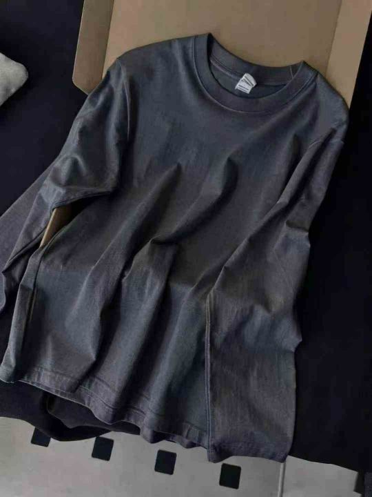 6.8清200件200G重磅纯棉黑白纯色宽松长袖t恤男夏季圆领纯色打底衫长袖体恤...
