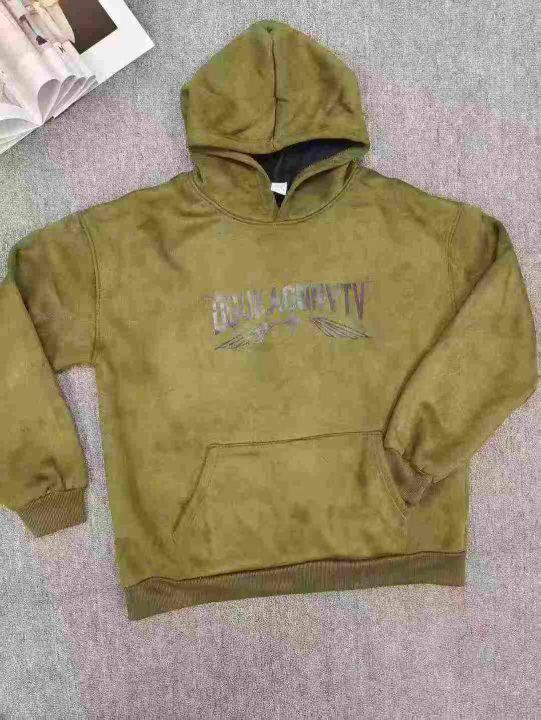 [福]爆款重磅麂皮绒连帽卫衣美式街头潮牌运动加绒烫画...