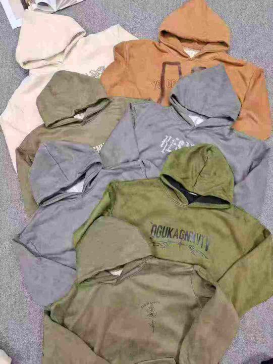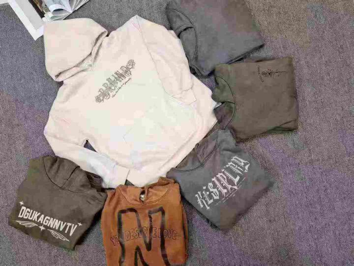 [福]爆款重磅麂皮绒连帽卫衣美式街头潮牌运动加绒烫画上衣750件,版型宽大可做情侣装。码数1~4码,单款多色潮流印花,拉链袋独立包装。