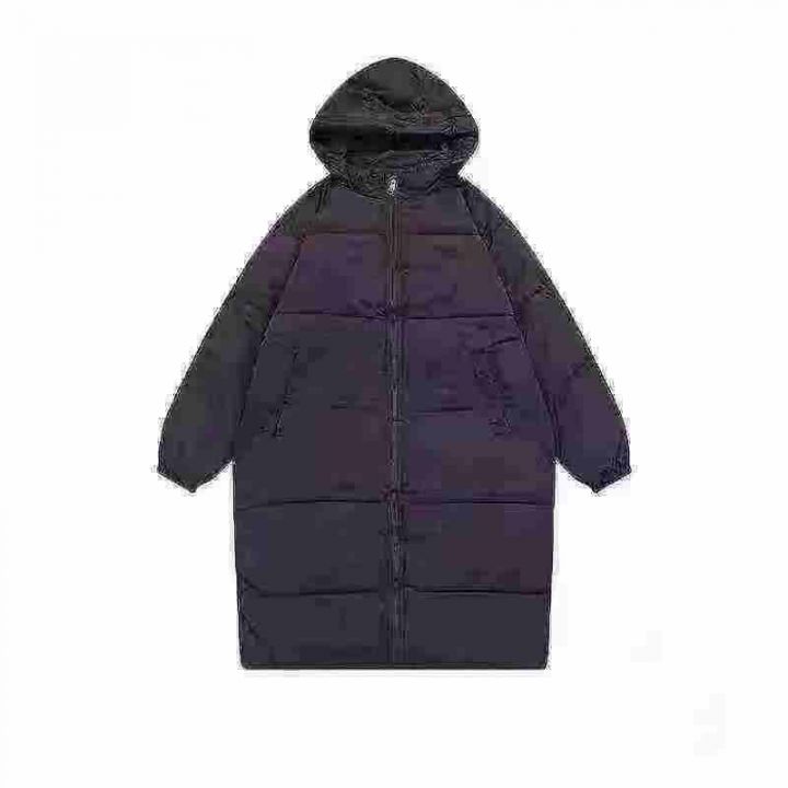 冬季女中长款韩版宽松连帽纯色新款情侣过膝加厚休闲面...