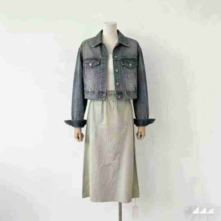 7.8清韩系新款复古高腰双口袋工装半身裙绑带松紧宽松A...