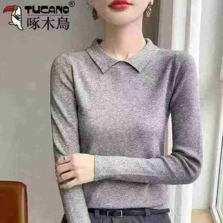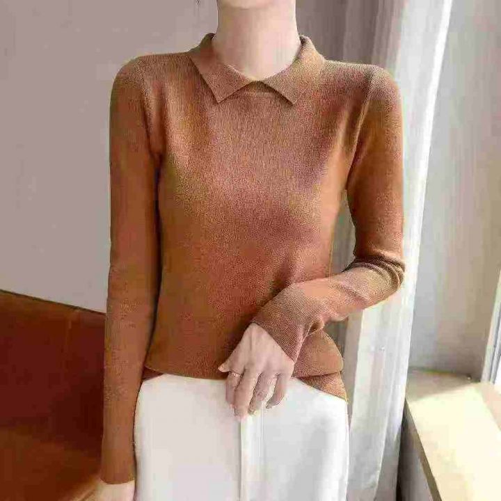 7.9清248件女装翻领纯色百搭秋冬新款打底毛衣针织衫,...