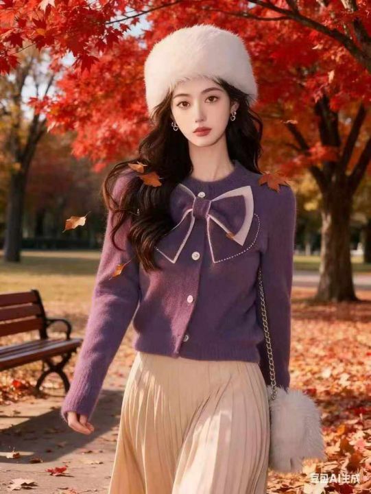 全清16.8,开衫单排扣胸前蝴蝶结高级感针织上衣女2025秋季新款厚实水貂绒软糯毛衣,码数M到XL。共30件不分货