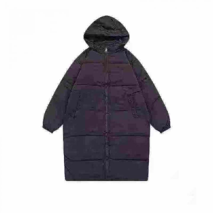 冬季女中长款韩版宽松连帽纯色新款情侣过膝加厚休闲面...