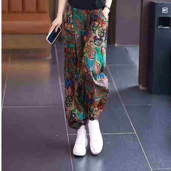 上新全清:5.8一件民族风印花遮肉显瘦宽松百搭休闲裤...