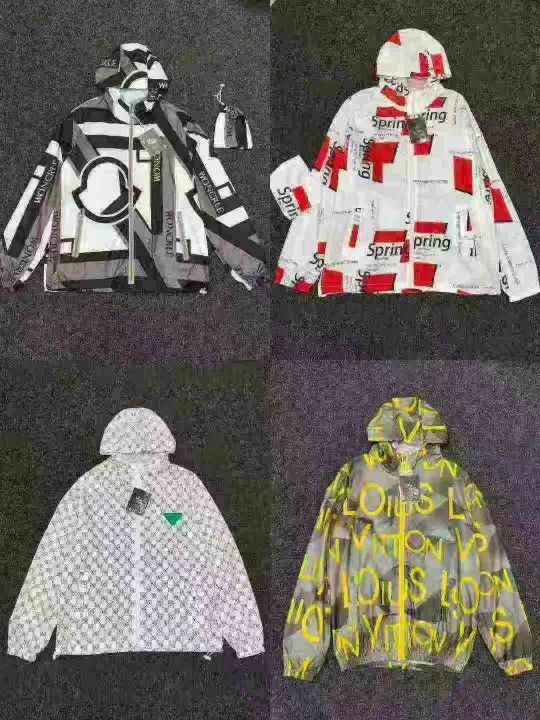 品牌好货男女情侣印花皮肤衣透气连帽潮流时尚薄款防晒服,静色款有独立收纳袋装,码数S-6XL,数量788件,全清7.5元,分货加5毛